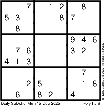 The Daily SuDoku: Mon 15-Dec-2025