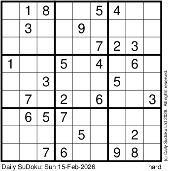 The Daily SuDoku: Sun 15-Feb-2026