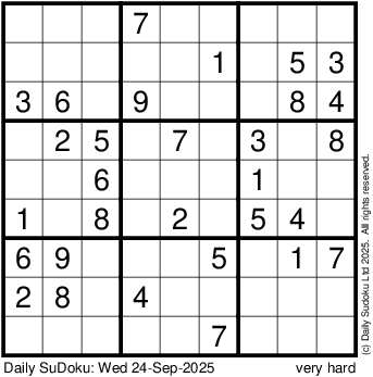 The Daily SuDoku: Wed 24-Sep-2025