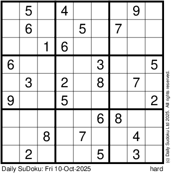 The Daily SuDoku: Fri 10-Oct-2025