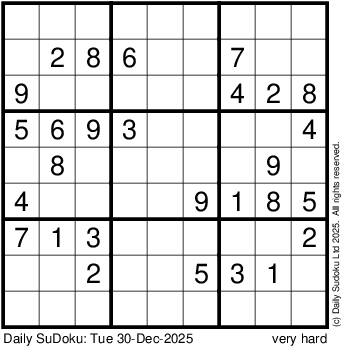 The Daily SuDoku: Tue 30-Dec-2025
