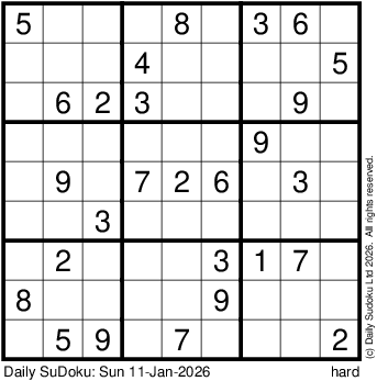 The Daily SuDoku: Sun 11-Jan-2026