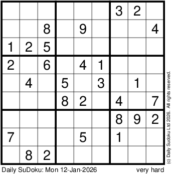 The Daily SuDoku: Mon 12-Jan-2026