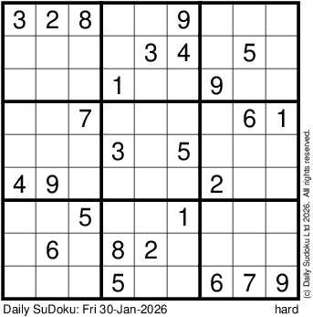 The Daily SuDoku: Fri 30-Jan-2026