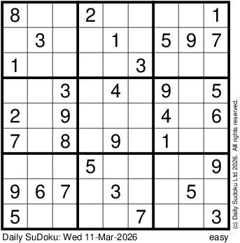 The Daily SuDoku: Wed 11-Mar-2026