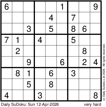 The Daily SuDoku: Sun 12-Apr-2026