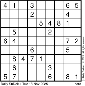 The Daily SuDoku: Tue 18-Nov-2025