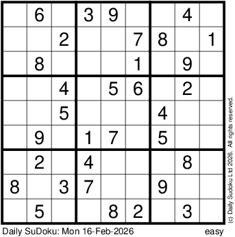The Daily SuDoku: Mon 16-Feb-2026